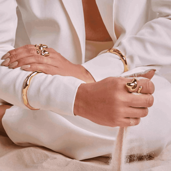 Bracelete Nexo, pertencente à elegante família de mesmo nome, destaca-se pela sofisticação e elegância. Sua abertura ajustável permite adaptar-se à circunferência do braço com facilidade. Com detalhes vazados que adicionam um charme extra, este bracelete refinado é perfeito para harmonizar com outras peças da coleção. Versátil, é uma escolha ideal para diversas ocasiões, adaptando-se ao seu estilo com requinte.
