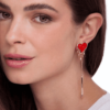 O Brinco Delírio Maria Dolores é um brinco longo, folheado a ouro ou ródio negro, com base em formato figurativo de coração com aspecto derretido e composição de resina Vermelha. A parte de trás do brinco que é composta por uma corrente e um pingente em formato de gota é removível, e isso faz com que o brinco possa ser usado de duas maneiras distintas: curto ou longo. A Coleção Impulso é pura emoção. Dá forma a experiências. Entrega-se ao movimento da vida. A coleção possui três famílias pensadas a partir de um mesmo conceito: As emoções e como elas se manifestam. O Brinco Delírio faz parte da família Paixão, que simboliza a paixão e o desejo, em um furor de pedras, metais e sensibilidade.