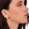 Assim como o Brinco Mustique, concebido em uma Collab Maria Dolores e a estilista Patricia Bonaldi, a PatBO. Um brinco pequeno, no ouro, perfeito para quem adora um mood pérola, que é uma pedra orgânica e traz um perfume do mar para o nosso universo urbano.