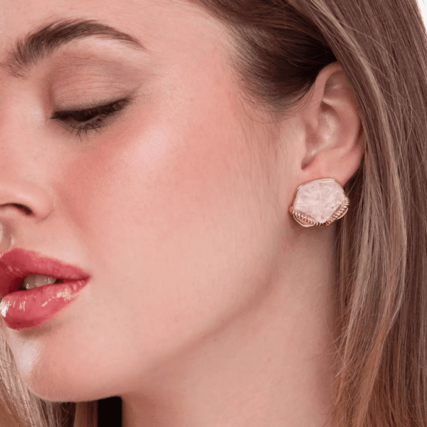 O Brinco Ziú Maria Dolores é um brinco pequeno, folheado a ouro o ródio negro, criado em collab com a estilista Patricia Bonaldi. O brinco possui formato orgânico arredondado, com uma pedra natural Cristal e detalhe em metal com textura de corda sobreposto à pedra. Um ícone da marca que traduz o DNA Maria Dolores e combina com todos os estilos e coleções.