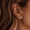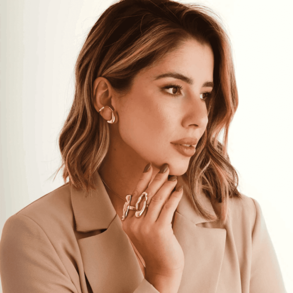 Brinco Earhook Amálgama, uma peça com design orgânico e leve, “abraça” a orelha e dá um toque contemporâneo ao seu mix de acessórios, uma joia que preenche visualmente sem pesar.